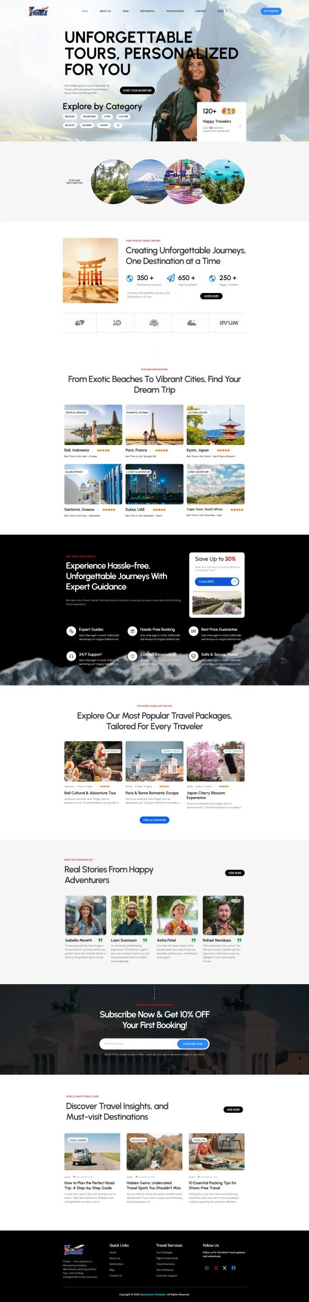 A premium tour and travel website designed to deliver a seamless user experience, allowing visitors to easily explore packages and connect for bookings. The project focuses on strong visual appeal, smooth navigation, and building a trustworthy online brand presence.